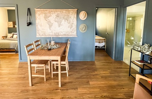 The cosy lounge room hosts a wood fireplace, perfect with a wine and a book on a winter's night or roasting marshmallows with the family. If you prefer the outdoors- spark up the outdoor fire pit and bbq and enjoy a night under the stars.