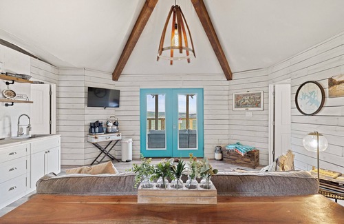 Set apart from the other tents, Hillside Retreat offers a private and peaceful atmosphere, making it the most secluded option on the property. The interior features rustic luxury with designer touches throughout, creating a warm and inviting ambiance. The surrounding area is a haven for nature lovers and adventurers, with nearby attractions like Fischer Dance Hall (7.9 miles, 12 min), Wimberley Square (10 miles, 15 min), and Whitewater Amphitheater and Tubing (11.1 miles, 18 min).