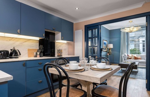 Unwind in the stylish living room with a cosy settee, a smart TV with Sky TV package, and superfast Wi-Fi throughout. Whether you're relaxing after a day exploring Stirling or catching up on your favourite shows, this inviting space offers a restful retreat with modern comforts.