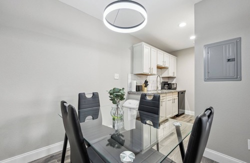 This upgraded 1-bedroom apartment offers a spacious layout with hardwood floors, a contemporary kitchen, walk-in closet, and a private patio or balcony in select units. Enjoy modern comforts like high-speed internet, individual climate control, and ceiling fans. Fully furnished with everything you need for a comfortable stay, it's perfect for business travelers, students, or anyone seeking a convenient, home-like experience near UT Arlington.