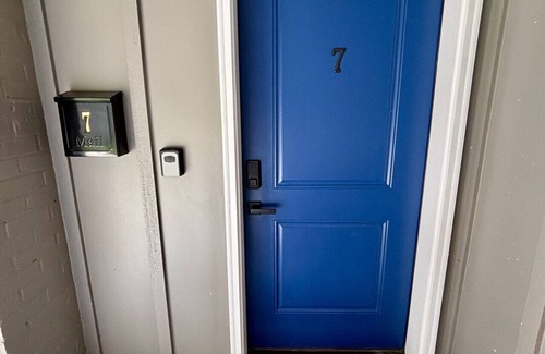 Unit 7 at The Monarch Downtown offers 625 sq ft of comfortable living space, featuring two queen bedrooms and an oversized sofa in the living area. The unit comfortably sleeps up to 6 guests. The full kitchen is equipped with everything you need to cook and enjoy meals, and the full-sized washer/dryer adds convenience for longer stays. Exposed brick adds a touch of historic charm, blending beautifully with the modern touches throughout. The unit’s amenities ensure a comfortable, hassle-free stay. Walk to local dining, shops, and entertainment—perfect for business or leisure stays!