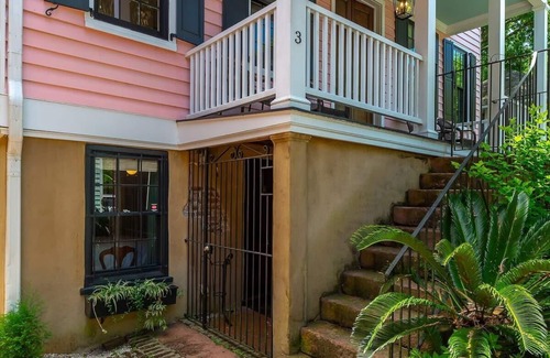 This is a three story well appointed home. Being off the street makes this a quiet place to stay, but a stone's throw from the lively King Street when you don't feel like being quiet. Guests enter from the piazza on the second floor. This home is perfect for the foodie with a large fully equipped kitchen, dining area for 6, and spacious living area. The kitchen includes a full size fridge, microwave, toaster oven, stovetop, oven, dishwasher, dinnerware, pots & pans, and cooking tools. There is a washer dryer on the first floor for those who stay longer and wish to do laundry.
