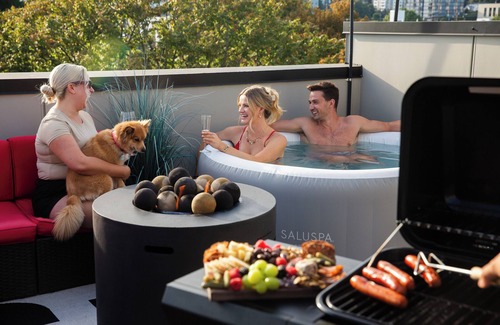 Indulge in urban luxury as you soak in the hot tub under the starlit sky or fire up the BBQ grill for an alfresco dining experience like no other. Inside, find comfort and convenience with modern amenities thoughtfully curated for your utmost enjoyment.