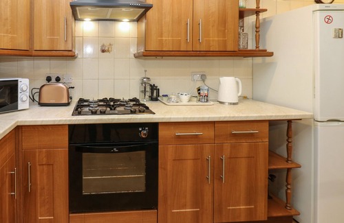Amenities: Electric central heating. Gas oven and hob, microwave, fridge, washing machine, tumble dryer, dishwasher, kettle, toaster. 3 x TV, WiFi. Fuel and power inc. in rent. Bed linen and towels inc. in rent. Travel cot and highchair available. Parking in public car parks in local area, payable on site. One well-behaved pet welcome. Sorry, no smoking. Shop 0.2 miles, pub 0.1 miles. Note: Above a café. Note: Set over three floors, not suitable for those with mobility issues