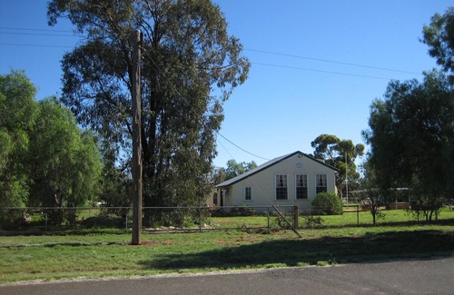 The Old school is situated 70 klms from Griffith NSW 40 klms from Hillston and 120 klm from Hay NSW Set in the black stump country. Cabins are situated at the old school property. There is other accommodation on site, as well property is operated as a caravan park but there is small area set aside usually quiet, please do not hesitate to contact us for more details