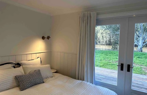 A freshly updated cabin with a large deck facing the Murrumbidgee River.