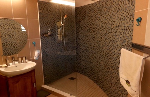 The Rond Dada, built on the model of the rondavelle, is circular which gives the place a bit of originality. Small kitchen, large bedroom with cable and WIFI with a bed of 2 m by 1m60, large bathroom and walk-in shower: there is nothing missing! the decoration is modern, bay windows, shutters, neat furniture and small key that fly: the LEDs embedded in the ground.