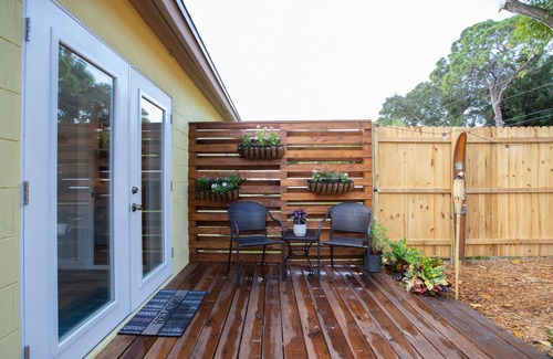 The Salty Crab Studio invites you to a Private St Petersburg Oasis. This spacious and cozy studio has been completely updated with features like a functional kitchen with fridge, coffee maker, and toaster-oven, an on-suite bathroom with stand-up shower, king size bed with nightstands, and its own private patio area with furniture, BBQ Grill, and outdoor lighting. Bicycles are furnished to take advantage of the outdoors. This suite is equipped with its own individual AC System, access to washer - dryer, Television, and ample countertop space. Located next to a Golf Course, minutes from St. Pete Country Club, as well as Beaches, (St Pete and Pass-a-Grille), quick access to recreation, (Boyd Hill Preserve and Maximo Park), plus Downtown is about a $10 ride to endless options of Dining, Shopping, and Entertainment opportunities. Come stay for a while, you’ll find you may never want to leave.
