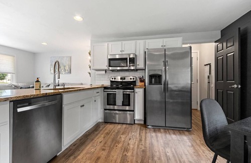 Welcome to "Stay Green Bay Stadium View" where you will enjoy morning coffee with a clear view of Lambeau Field out the front window. Granite counter-tops, subway tile backsplash with a huge peninsula large enough to fit all your guests in one space. LVP Commercial grade flooring throughout the entire home, so you don't have to worry about messes that come along with traditional carpeting. Bedroom 1 on main floor has a king, the other two bedrooms have queens with comfortable linens. Cordless cellular blinds throughout house. High end sofa sleeper pull out in living room to accommodate large groups. Basement is super clean and just finished. 4th bedroom in basement with king size bed, egress window, with 2nd full bath. Sofa Sleeper in basement as well with large area to entertain.