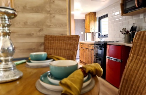 Spacious and well appointed, our Tree House has a fully equipped compact kitchen with microwave, toaster, hob and oven, fridge freezer, kettle and coffee machine. A gas BBQ is also available for all year round. Please note NO CHARGING OF ELECTRIC VEHICLES IS PERMITTED FROM THE PROPERTY. Charging point is available down at the main house.