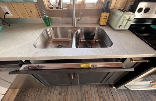 Offering 1550 square feet of comfort, our three bedroom family cottage is beautifully decorated and includes a fully equipped kitchen, open concept living/dining area with decorative old fashioned wood burning cook stove, ensuite washer/dryer and 2 full bathrooms. The master bedroom has queen size bed, queen size bed in the second bedroom, and a twin over double bunk in the third bedroom. All bedrooms curated with local pieces which give the home a truly “Newfoundland” feel combined with spacious living room and dining room make this the perfect size cottage for a large family or group of seven. The bedroom quilts were made for me personally by my wonderful extremely talented Aunt Margaret!