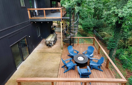But the true gem of this home, and its namesake, lies just beyond the doors. Step into the backyard oasis, where hammocks sway in the gentle breeze, a spacious outdoor dining area invites al fresco feasts, a playful spiral staircase beckons you to explore, and decks offer serene views of the beautiful Ozark forest. Gather 'round the fire pit, roast marshmallows, and savor the sweetness of life. You've created the perfect vacation for yourself and your loved ones, and it's time to raise a glass to the magic of the "Toasted Mallow."