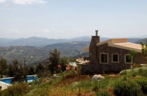 This small villa built from curved stone and wood according to traditional architecture with respect to the environment,situated on the side of a hill on the eastern feet of mountain Psiloritis at a height of 800m.Behind stands the impressive mount Gournos which is a protected Natura area due to its wide variety of plants and animals but mainly because the few remaining pairs of Gypaetus Barbatus build their nests (URL HIDDEN) the front there is a panoramic view.