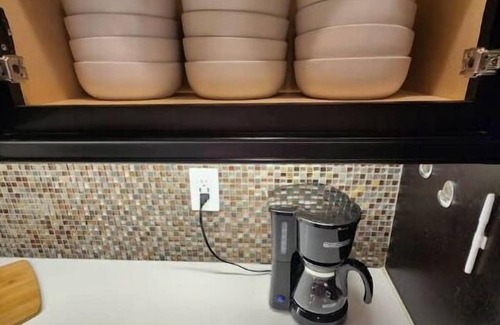 Kitchen fully stocked including coffee maker, coffee microwave, dishwasher and refrigerator