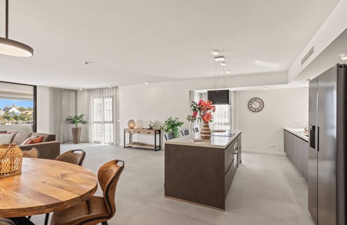 Located on the second floor, the apartment boasts two bedrooms and two bathrooms. A spacious and bright living room, with folding doors that seamlessly blend indoor and outdoor spaces, awaits you. The kitchen is equipped with all the latest amenities, ensuring convenience for all your culinary needs. Each bedroom is air-conditioned and furnished with comfortable beds to guarantee a restful night's sleep.