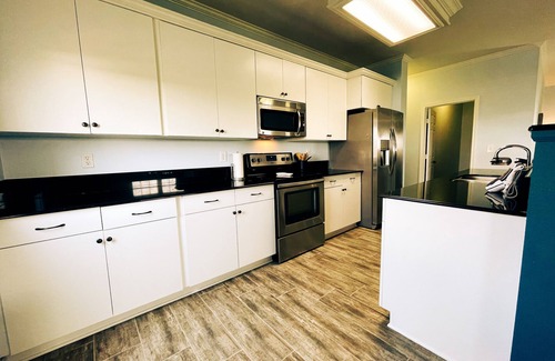 Enjoy a spacious open floorplan with all the conveniences of home and many more. This 3 bedroom with 2.5 baths features a very modern open floorplan that sleeps 12 guests. A fully stocked kitchen lets you enjoy cooking and entertaining whether inside or outside on the back porch. Have your morning coffee with the sunrise or your evening grilling into the sunset with the beautiful view while leaning over the rail asking all the returning boats "What Y'all Caught". Boat lifts downstairs with additional docks and fish cleaning facilities. If you choose to have a guided trip, pick up is available dockside downstairs.