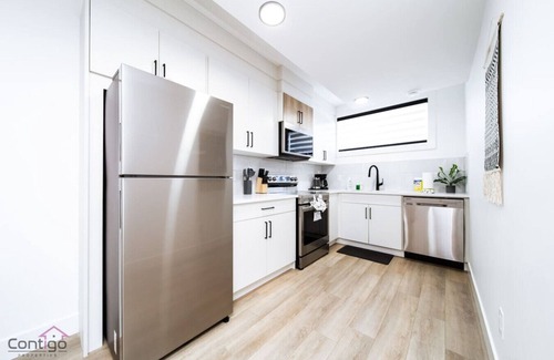 ✦ Complementary WiFi, tea and coffee. Your kitchen comes fully loaded with brand new stainless steel appliances such as a microwave, fridge, electric stove and dishwasher along with glasses, mugs, dishes, cutlery, and more!