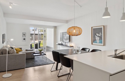 This apartment is located near the center of Helsingør, in the so-called Palae Marielyst. The furnishings are tasteful and detailed. Beautiful, open kitchen-living room equipped with a Nespresso machine and with direct exit to the sun terrace. Large bedroom with plenty of space, TV and door to the terrace. Sofa bed in the living room. Shared washing machine and ironing facilities on the first floor for a fee.
