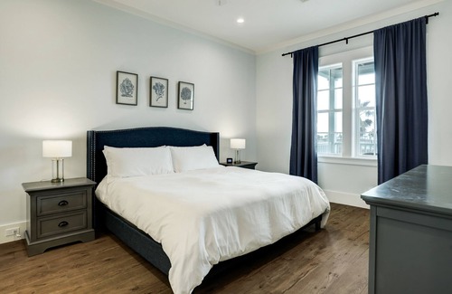Located at Beachtown, this townhome has a reverse floor plan where the living area is on the top floor. The plan allows for maximum views from the main living area for all to enjoy! You'll see views of the Houston Ship Channel as well as the Gulf of Mexico. This townhome has three-bedrooms and three full bathrooms including one king bed, one queen bed and a double over double bunk bed as well as a queen sleeper sofa.