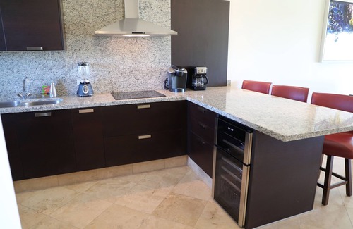 Gorgeous 2 bedroom 2 bath condo located just 1 block from Medano beach, one of the few swimmable beaches in Los Cabos, a 10 minute walk to the marina and 15 minute walk to downtown. Unit has everything you could ask for including a kitchen with all the gadgets you could need, a BBQ grill, washer and dryer, even a beach umbrella, beach chairs and cooler. Unit has a large master suite that includes a jacuzzi tub and plenty of closet space. Second bedroom has two extra long twin beds that can be converted to a king upon request, right out its door is a large bright second bathroom. If you need extra sleeping space there is a sleeper sofa in the living room that converts to a queen bed, the unit can sleep up to 6. Each bedroom and living room is equipped with a smart TV, American Dish Network Satellite television with over 100 english speaking channels and a Blu-ray/DVD player. There is WIFI in the condo.