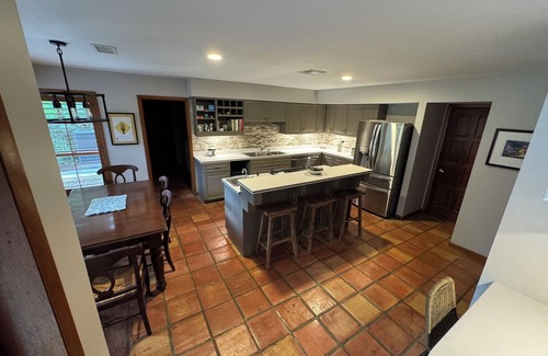 Our spacious 4,300 sq ft home is comfy, inviting, and perfect for up to 14 guests. There’s plenty of room to kick back and relax, with cozy living areas and two dining spots that are great for gathering around for meals or just hanging out. The master suite is a little oasis all on its own, while the four guest rooms have queen beds and charming loft spaces with twin beds—perfect for kiddos or anyone who wants their own nook.