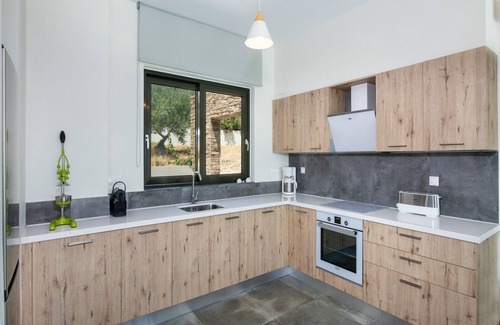 Step inside and discover a world of contemporary refinement, where every detail has been curated to enhance your stay. Fully air-conditioned and equipped with complimentary Wi-Fi, the villa offers modern conveniences alongside its serene surroundings. Two fully fitted kitchens, one in each home, provide everything needed for culinary creations, including a coffee maker, toaster, oven, kettle, fridge, freezer, and dishwasher. A thoughtfully stocked pantry ensures added convenience.