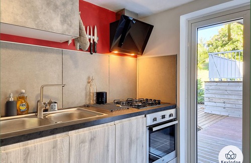 ✅ A fully equipped kitchen designed for your stay, with all crockery and kitchen utensils, kettle, coffee maker, oven, microwave, rice cooker as well as a fridge and freezer. A dining area equipped with a bar table and chairs.