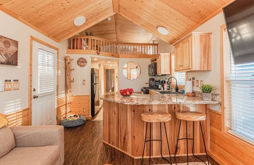 Located 2 min to Woodland Park this captivating tiny home is sure to give you the recharge and disconnect Recharge in memory foam beds. Enjoy a fresh cup of coffee overlooking blue Mountain skies. Premium design and work space for work and pleasure. Child & Pet-friendly, this home delivers upscale comforts and privacy you'll love.