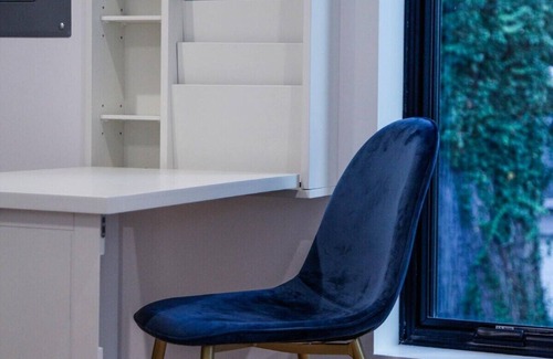 Welcome to the Portage Tiny House, a unique, modern space located in the beautiful city of South Bend, Indiana. Just 2 miles from the Notre Dame Campus! Sustainably built to produce as much energy as it uses, this place provides memorable stays for visitors to South Bend & Michiana. Enjoy a ‘little’ luxury with 18 ft ceilings, natural light galore, a balcony with grill, a fully stocked kitchen, highspeed Wifi & TV, and a Notre Dame-themed bedroom. We’d be honored to welcome you as our guests!
