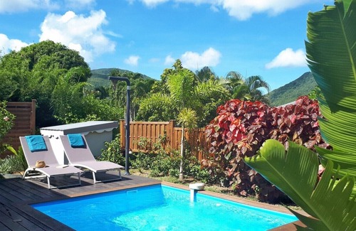 Large modern fully equipped kitchen opening onto a large terrace in red wooden deck with private pool. The villa is brand new and is a mixture of tradition and modernity. Unique tourist product on GUADELOUPE.
