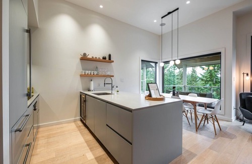The main living space features an open-concept dining and kitchen space, equipped with high-end modern appliances for effortless cooking & dining. First bedroom features a King bed with an ensuite bathroom, and the second bedroom features a Queen bed with access to a full washroom in the hallway. Your Whistler adventure awaits!