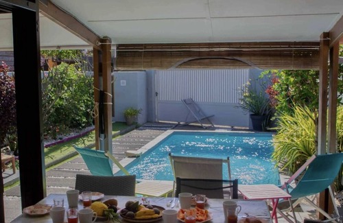 Small renovated house in the Terre Sainte district. Less than 15 minutes walk from the small beach of Terre Sainte. Less than 10 minutes on foot: bakery, hairdresser, mini-market. Less than 10 minutes by car from the city center and Saint Pierre beach (restaurants, bars). This house is composed of two air-conditioned bedrooms (140/190 bed and 160/200 bed), a bathroom with walk-in shower, a fully equipped kitchen open to the living room, a veranda overlooking the pool, a sofa double bed.