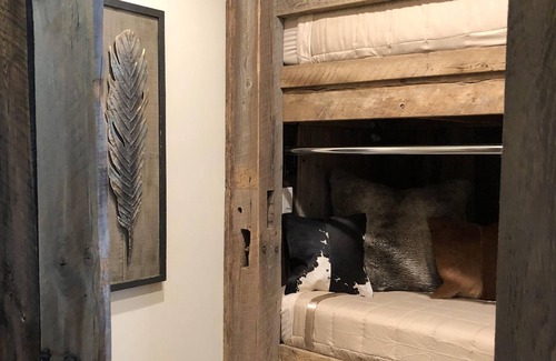 Lower level master bedroom has a king size bed & queen size sofa-bed. We a bunk room that sleeps 2 additional guests. The bath has a beautiful walk-in shower & two vanities. Lower level also has a full kitchen with stainless steel appliances, flat screen HD TV, new floors & two spectacular stone accent walls.