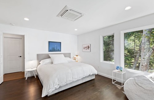 For relaxation, indulge in the comforts of a 6-person sauna, enjoy the warmth of radiant bathroom floors, and bask in the abundant natural light that fills every room. This turn-key sanctuary is truly one-of-a-kind, promising a stay of unmatched tranquility and luxury.