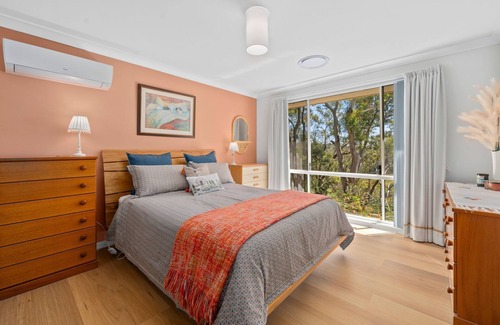 Designed with style and functionality in mind, the fully-equipped kitchen comes with modern appliances including a cooktop, oven, dishwasher, and a microwave. Complimentary Wi-Fi and reverse cycle air conditioning (heating & cooling) in all bedrooms and living areas, adds a touch of modern convenience to this enchanting woodland escape.