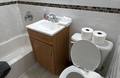 Perfect for families or small groups, this thoughtfully furnished 5-bedroom home offers comfort and space in a convenient New York location. You'll find a mix of sleeping options—from a king and queen bed to multiple doubles and a sofa bed—making it easy for everyone to settle in. Whether you're in town to sightsee or just relax, the home is equipped with everything you need, including air conditioning, fast Wi-Fi, and a fully stocked kitchen for meals at home. Self check-in makes arrival simple, and the home's warm, casual vibe helps you feel at ease from the moment you walk in. Whether you're here for a long weekend or a longer stay, it's a cozy, clean, and well-located spot to call home.