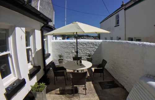 This leads through to a modern and well equipped kitchen and bathroom with underfloor heating. Appliances include: Smeg cooker, induction hob, fridge with small freezer compartment, dishwasher, washing machine and microwave. Outside there is a lovely enclosed walled courtyard with seating and barbecue - a real suntrap! A side access gate leading towards the quay makes it ideal for storing bikes and surf boards.