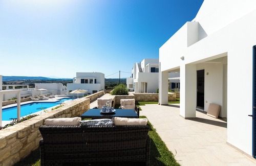 Simply yet tastefully decorated Villa nr. 3 (102 m2), belongs to an island-style complex, Triton Sea View, in the Kavros area.