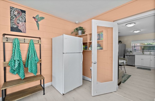 The Pink Flamingo is a boho-style home conveniently located 1 block to the ocean and 2 blocks to downtown. This home is located on a unique property with a surrounding yard area and private courtyard . Some of the conveniences offered at Pink Flamingo include high-speed internet access, a well-equipped kitchen, bar cart, separate laundry room, large bbq grill, bench swing, and fire pit.