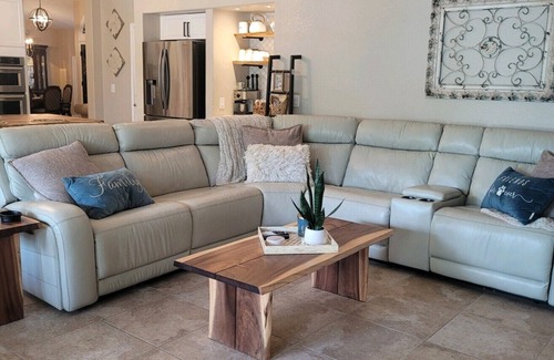 This 2400sqft home offers 5 star resort style living outdoors and all the comfort you deserve inside. The pool is surrounded by palm trees tropical plants, and 5 fountains. The covered outdoor kitchen has a gas grill, electric smoker, refrigerator, and TV. There is also a hot tub and huge wood burning fireplace. The interior has just been fully updated. There are 4 bedrooms and 2 bathrooms. The kitchen has all new appliances including an induction cooktop.