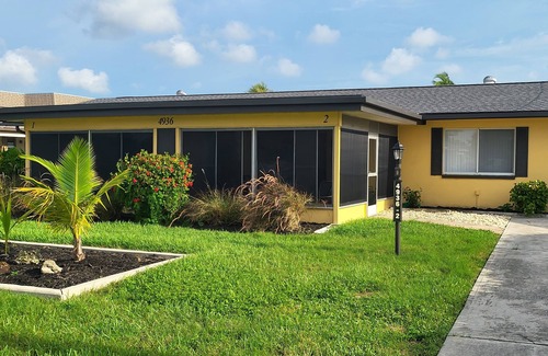 Fun and entertainment in every direction in this TWINHOME.. Enjoy and relax in the solar heated Salt water chlorination pool, fish right from our dock or pier fish at the Cape Coral Yacht Club. If you are a beach goer , the Yacht Club offers a white sand beach just a few blocks away or head to Fort Meyers Beach and get in on one of the many volleyball games going on at all times. This property is close to so many beautiful beaches, islands, and attractions, but also an excellent option if you just want to relax at home by the pool. You are able to easily get to Sanibel Island, Fort Meyers Beach, Fort Meyers, Estero, Lovers Key and Bonita Springs for short day trips.