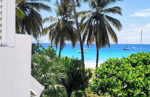 This is a fabulous, newly custom made,renovated apartment on bottom floor of a historic building located west (for the sunset) facing the magnificent calm waters of Carlisle Bay & Bayshore Beach. The apartment is on the only beach on the south coast with West Coast conditions but instead with white powdery sand. With stunning sunset views of sailboats and the deep water harbour, the apartment consists of 2 master bedrooms with ensuite bathrooms and looks on to a charming garden. There are four different kind of palms. Off the garden there is also an elevated gazebo looking on to the beach. The apartment is fully equipped for self catering.