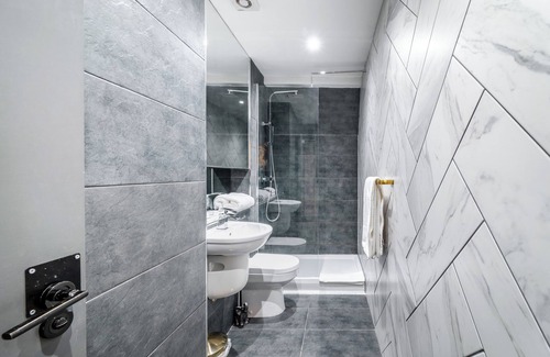 This 2-bedroom apartment is designed for comfort and style, accommodating up to seven guests. The open living area boasts a sleek sofa bed, providing additional sleeping space alongside one luxurious king-size and single bed in the first bedroom. And an additional king-sized bed in the second bedroom. Natural light floods the space, highlighting modern décor, while the fully-equipped kitchen invites culinary adventures. The bathroom is sleek and contemporary, offering a rejuvenating shower. Nestled in a vibrant neighborhood, this apartment is an ideal retreat.