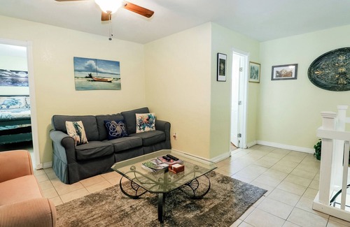 Kick back and relax in this hidden gem. You will find inside a cozy kitchen area accompanied by a dining room space with spiral lit up stairs leading to a comfortable living room space upstairs alongside a bedroom and bathroom. Bathroom includes a washer, dryer and walk in shower. In the back of this Hidden Gem is a Private Backyard. This home is also a walk away from the Beach and the Pier!