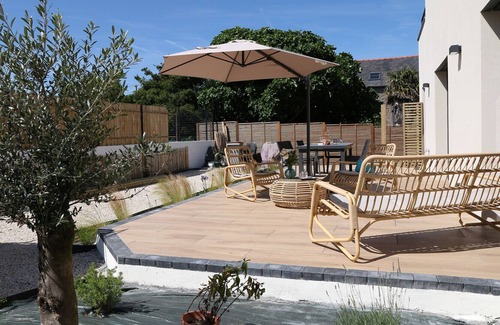 Contemporary house, the Ty Marzotine rental charms with its spacious, bright interiors and its location just steps from the beautiful Port Mer beach.