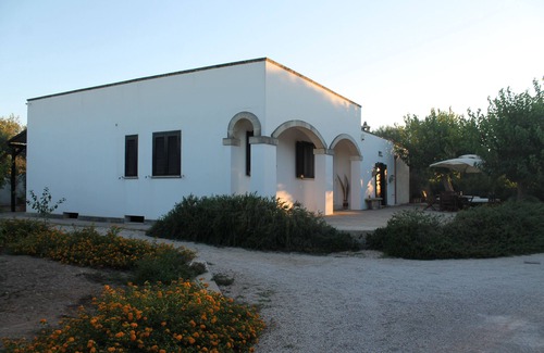 Characteristic Salento villa surrounded by an olive grove and orchard of 5000 square meters. The house consists of three spacious bedrooms, a comfortable lounge with TV area with home theater (connection also with satellite dish), large sofa and armchairs, a fully equipped kitchen with dishwasher. Central part of the house a typical barrel vaulted room and ancient fireplace makes the structure more welcoming. In the rear part the solarium area will allow you to relax in the right privacy and enjoy the pleasure of an evening barbecue. At the front of the house there is a relaxation area with sofas and a large table for outdoor dining.