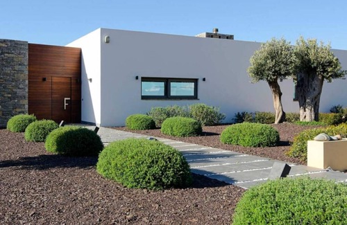 A unique modern villa designed and built by Antonis Hadzidakis, a well known Cretan architect, set on a 5000 sqm plot. The style is minimalist, the stone local, the decoration simple. The villa is pure luxury, but don`t expect opulence from that. It`s the location that counts and the home has been designed with that particular location in mind.