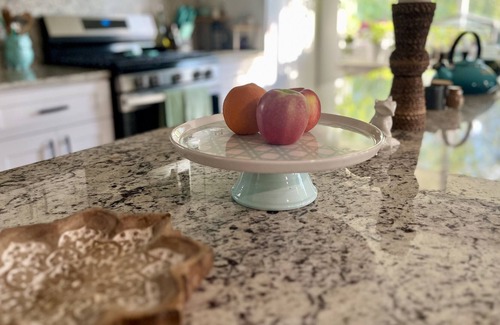 Open concept living with a large but cozy “great room”, where the kitchen flows into the living room, and a large island with waterfall counters can seat 4 with counter height chairs on one side and 3 more stools available to sit around the sides. There is a dining table against the window that can be pulled out and unfolded to create more dining space if needed. Three couches in the living room create a nice large gathering space for people to sit around comfortably. The master bedroom has a king sized bed and on-suite bath with shower. 2nd bedroom has a Queen sized bed and dresser. 3rd bedroom has twin daybed with 2nd twin trundle underneath that can be pulled out and popped up to be same height as daybed. They can be pushed together or kept separate. 2nd hallway bathroom includes a bathtub. Laundry room available for your use. There are two extra twin fold out beds available upon request, but would have to be placed in living room or in master bdrm.