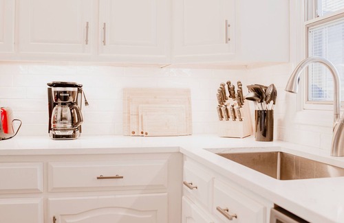 The living room is the perfect space to unwind and make memories with your loved ones. Sink into the large sectional couch and watch your favorite movie on the flat-screen TV or challenge your friends to a game on the pinball machine, adding a touch of nostalgic fun to your stay.