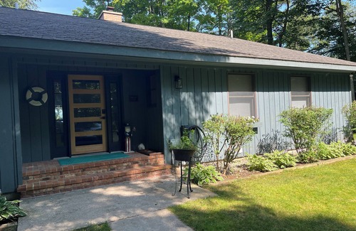 Relax with the whole family on beautiful turquoise Torch Lake. Use one of the kayaks to see the loons, swim from your own private beach, roast marshmallows on the beach, have cocktails while watching spectacular sunsets, fish from your own “drop off” (100’ out from our beach) or play board games late into the night in the screened in porch. There are beautiful perennial gardens all around the property.